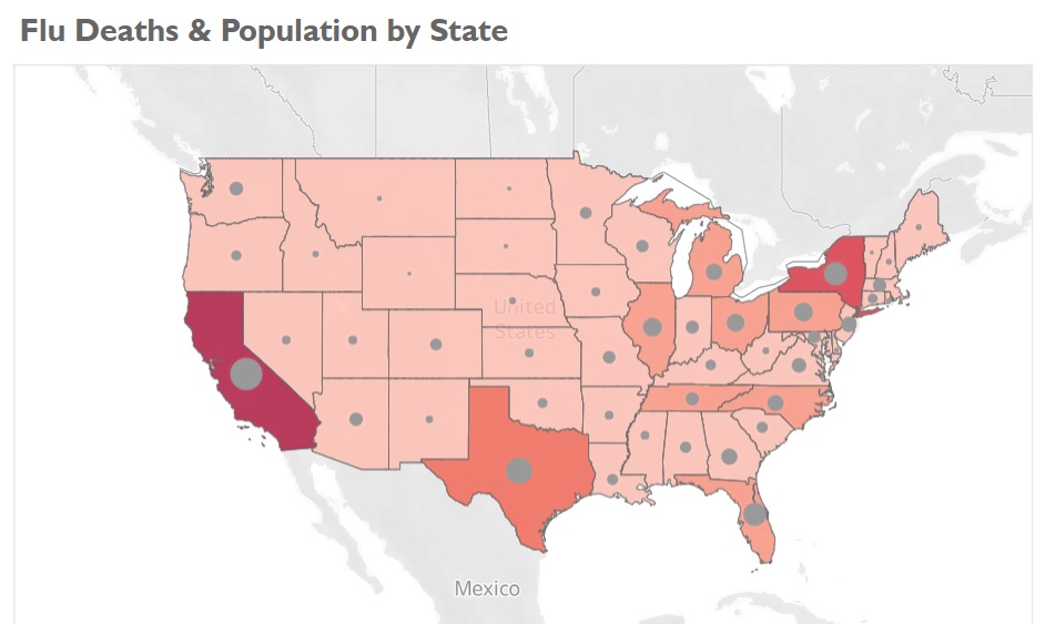 States with high populations and especially those with high populations of individuals over 65 years of age, experience the greatest impact and number of deaths from the flu. For this reason, these states should have higher priority when allocating additional staff during the US flu season.